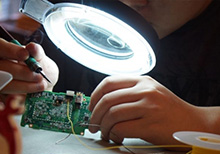 Сотрудник сервисного центра делает восстановление: заменяет проблемную деталь работоспособной заводской запчастью
